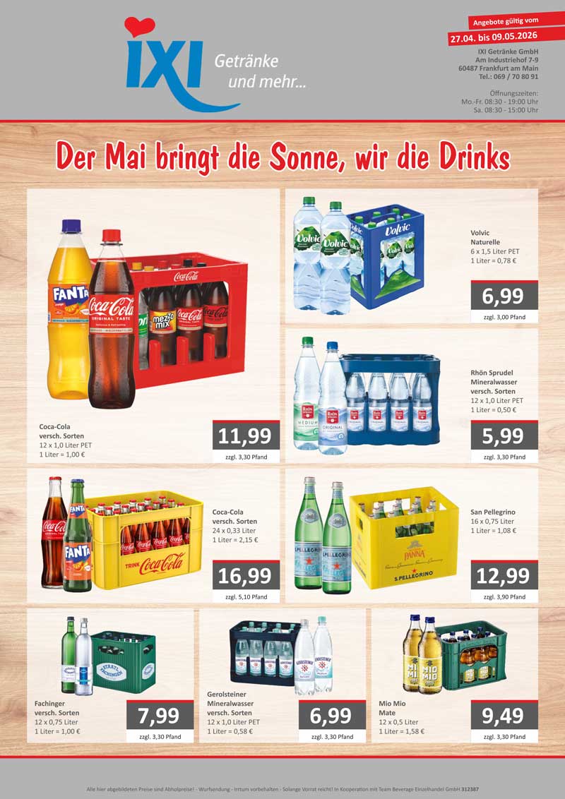 Mineralwässer, Limonaden, Cola-Produkte,Eistees,Mateprodukte, Schorlen, Fruchtsäfte, Bio-Getränke,